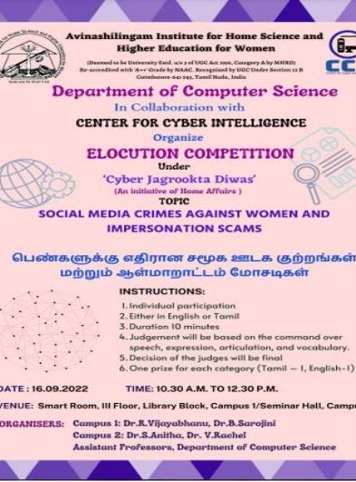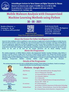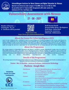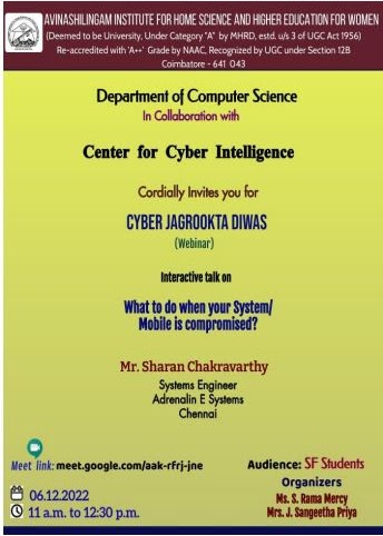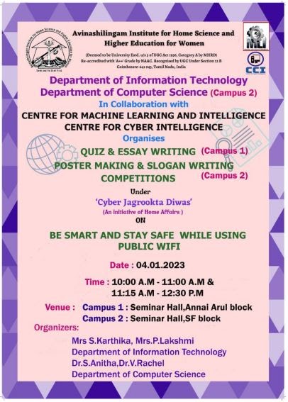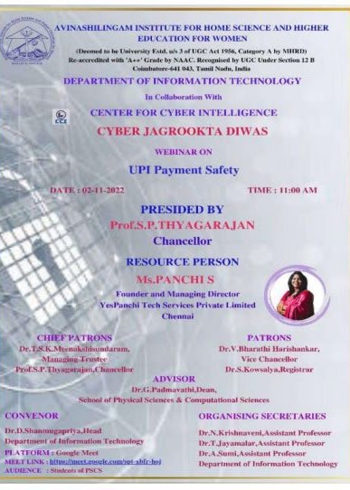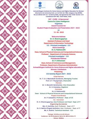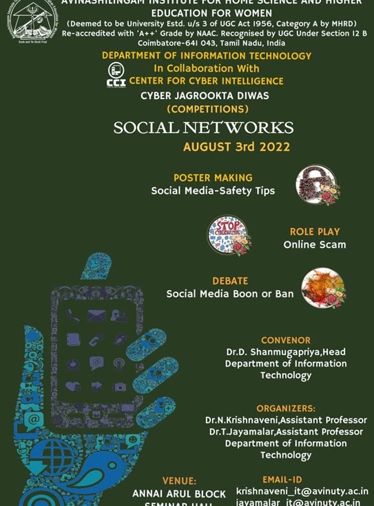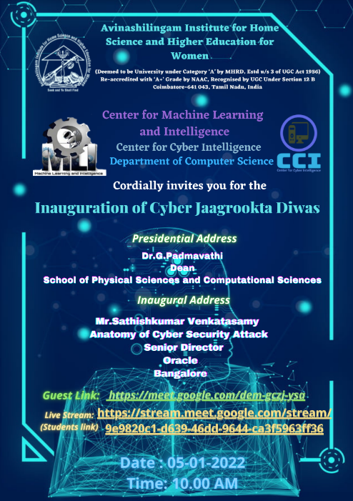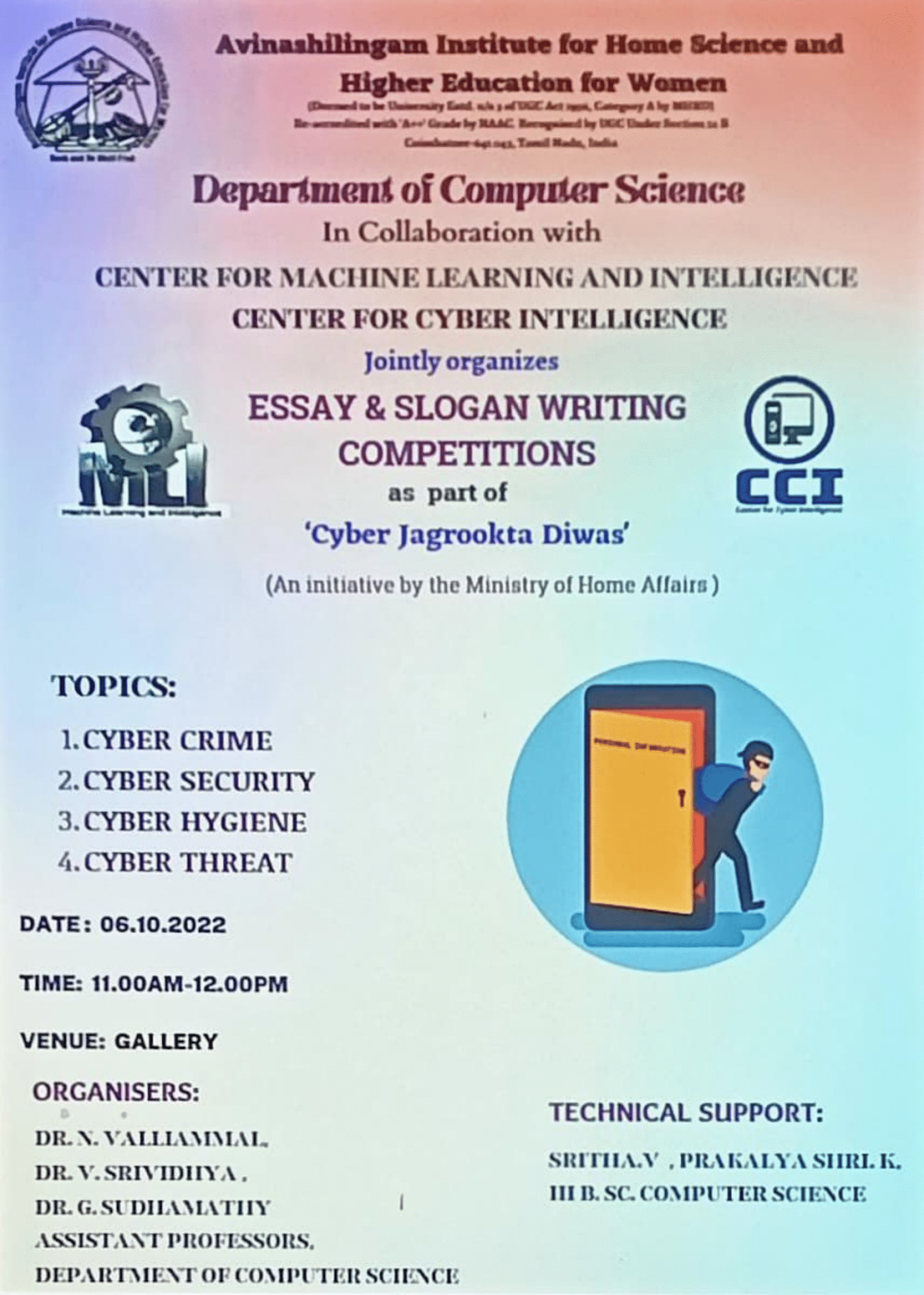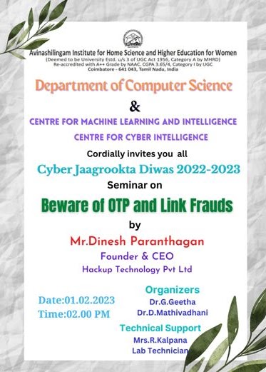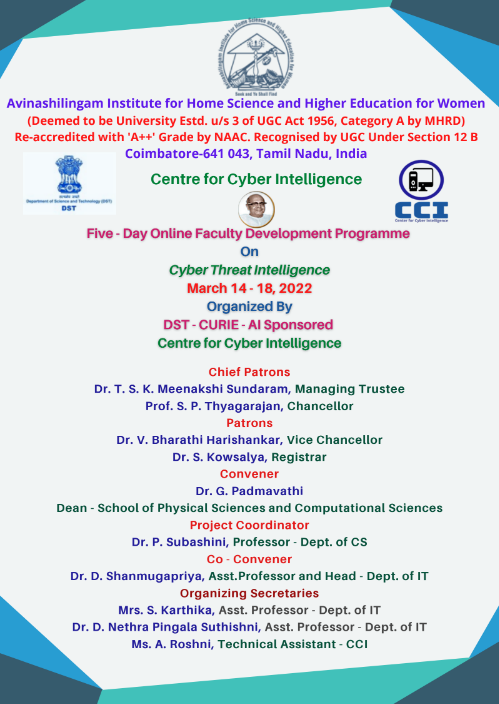 1. Conducted a "Awareness Programme on Cyber Security" for School Students of Sri Avinashilingam Higher Secondary School for Girls, Coimbatore - Feb, 2022. (Report)