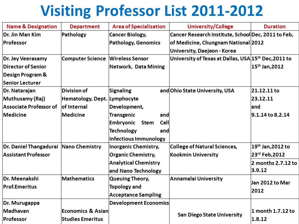 Professor of Practice , Visiting Professor and Adjunct Professors- Calendar