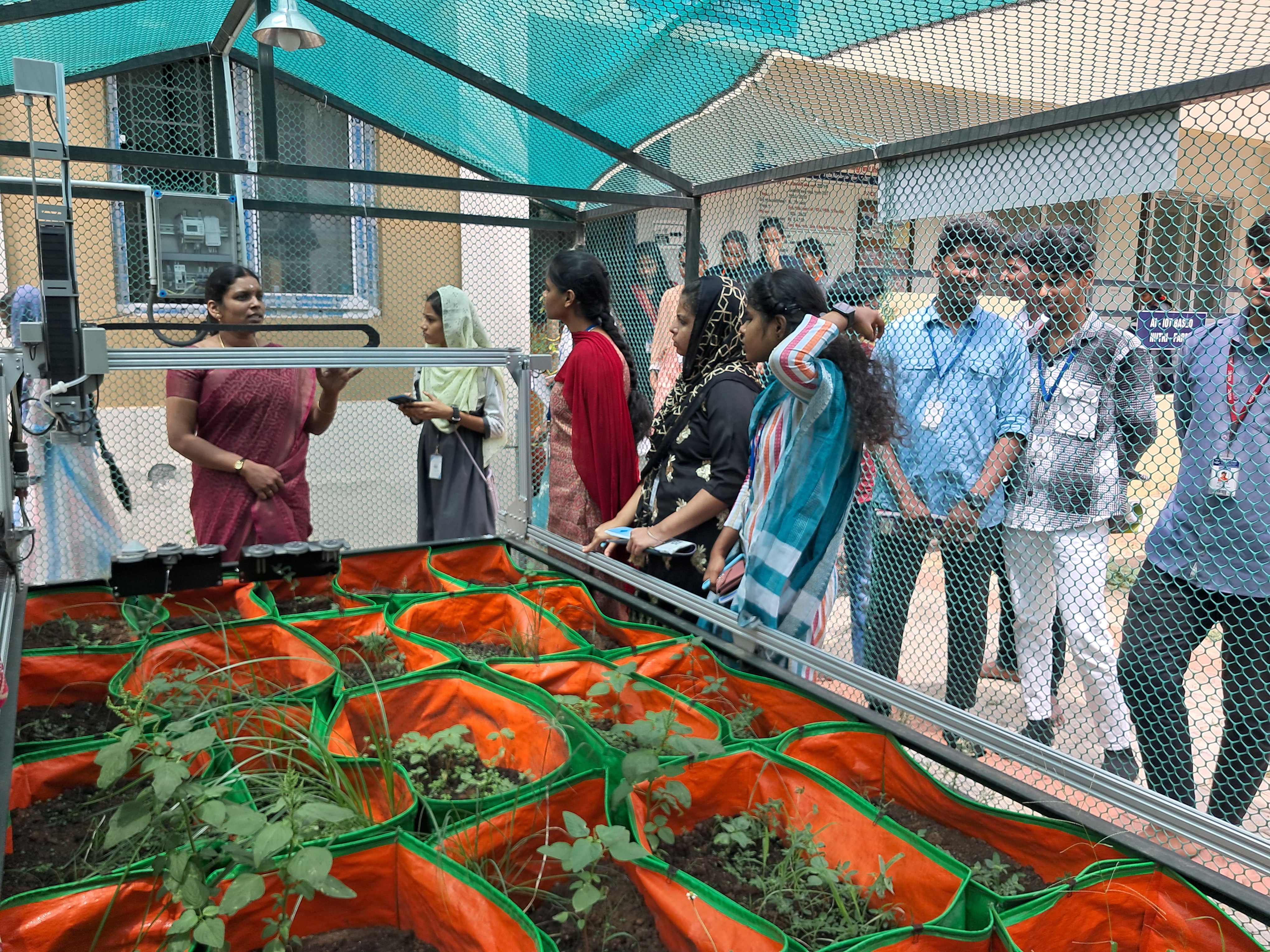 Farm automation, often associated with smart farming. It is a robot to farm the different crops in particular area. The robot itself moves around using tracks on the sides of the box, and it works in three dimensions. So it can go left to right, forward and backwards, up and down. FarmBot sows seeds, waters plants and gets rid of weeds by using different tools for each job, depending on the task at hand. It monitors the plant 24*7. In our centre we will deploy the farmbot in order to cultivate the spirit of agriculture among the students. We will use drones to fertilize the plants. With the help of captured pictures from the drone, can implement Image Processing applications for further research work.