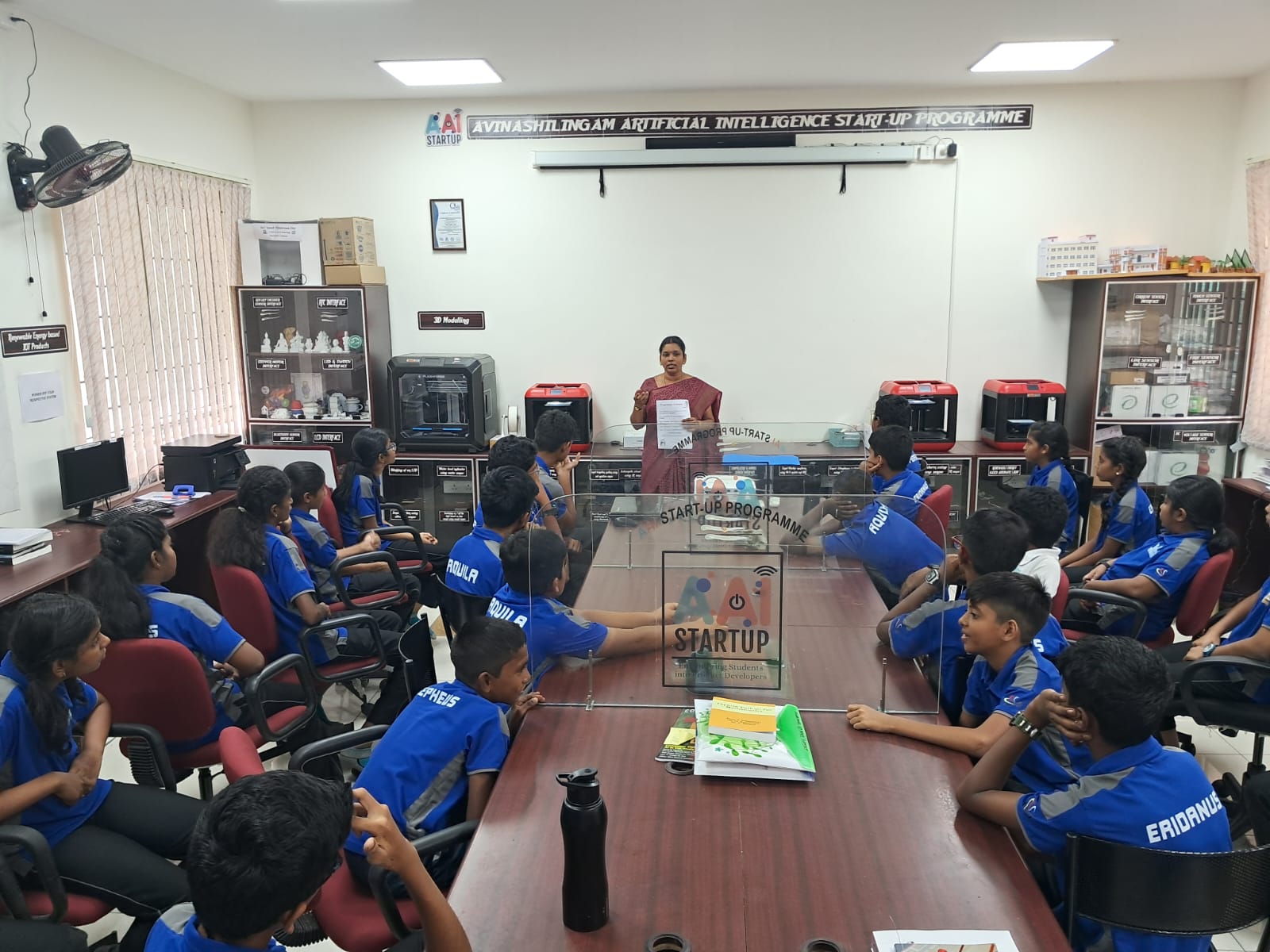 AAI Lab is a research platform for exploring the potential of students with Internet of Things for multidisciplinary research with more end-user interactions. It gives the power to the students to be at the core of the research and innovation process. It gives them the power to change the world and their future. AAI lab is equipped with micro controllers, RFID tags, different types of sensors. In the lab we have a 3D printer to develop multi disciplinary products. We have AVR software to engaged in the design and development of advanced human-machine interfaces for students. We will cultivate the spirt of technology based agriculture among the students with the help of farm bot deployed in our center. By using this lab, students could develop IoT proof of concepts, learn embedded programming and create their own prototypes.