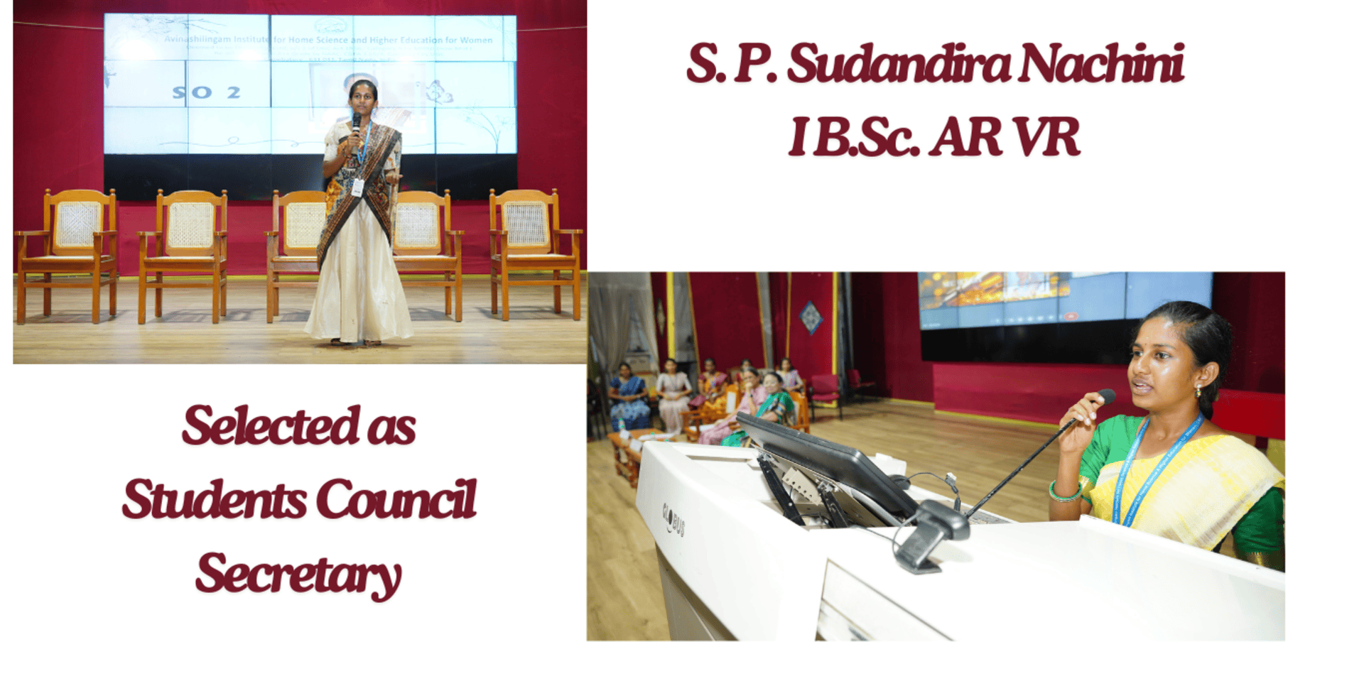 S.P. Sudandira Nachini I B.Sc. AR VR selected as Students council Secretary.