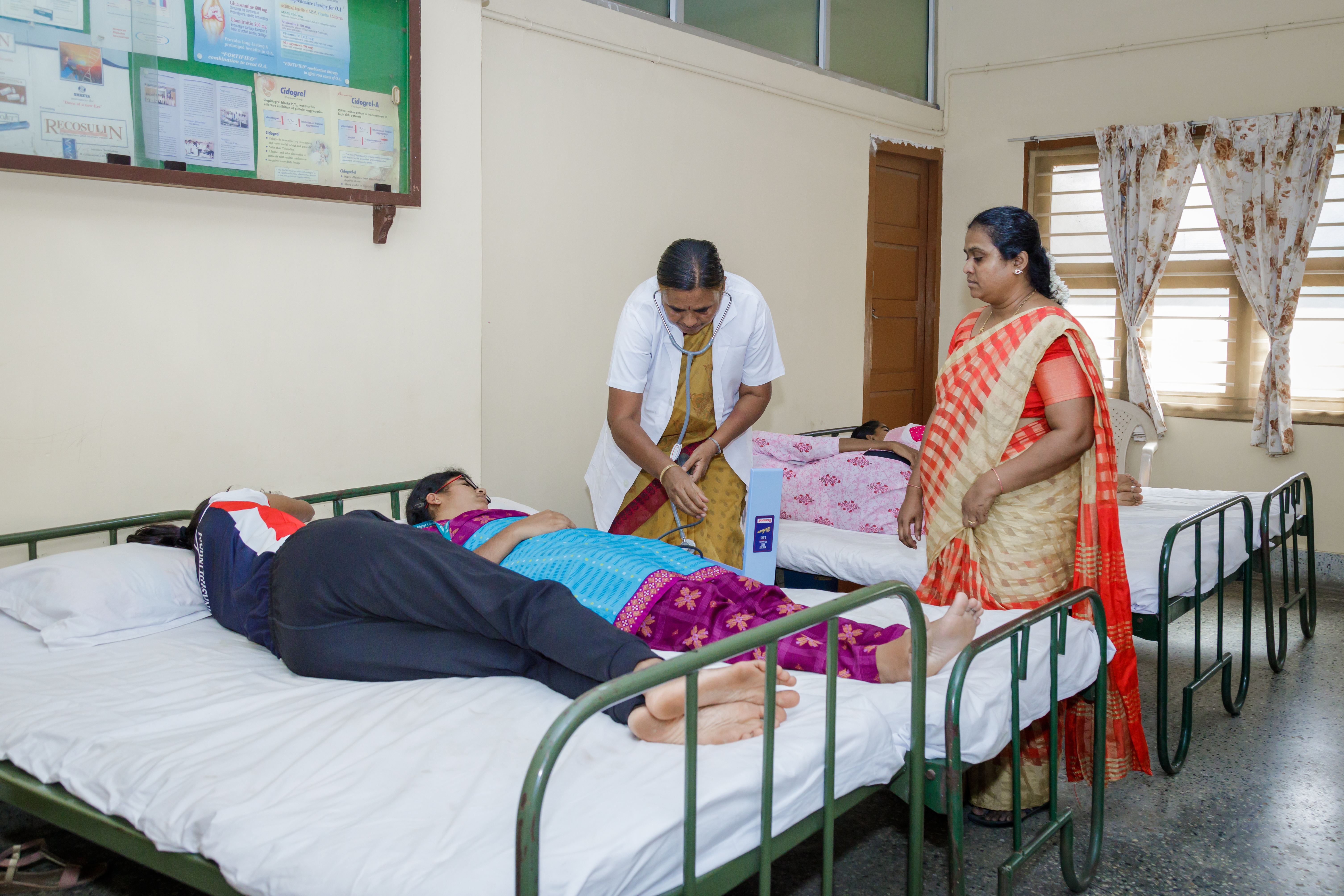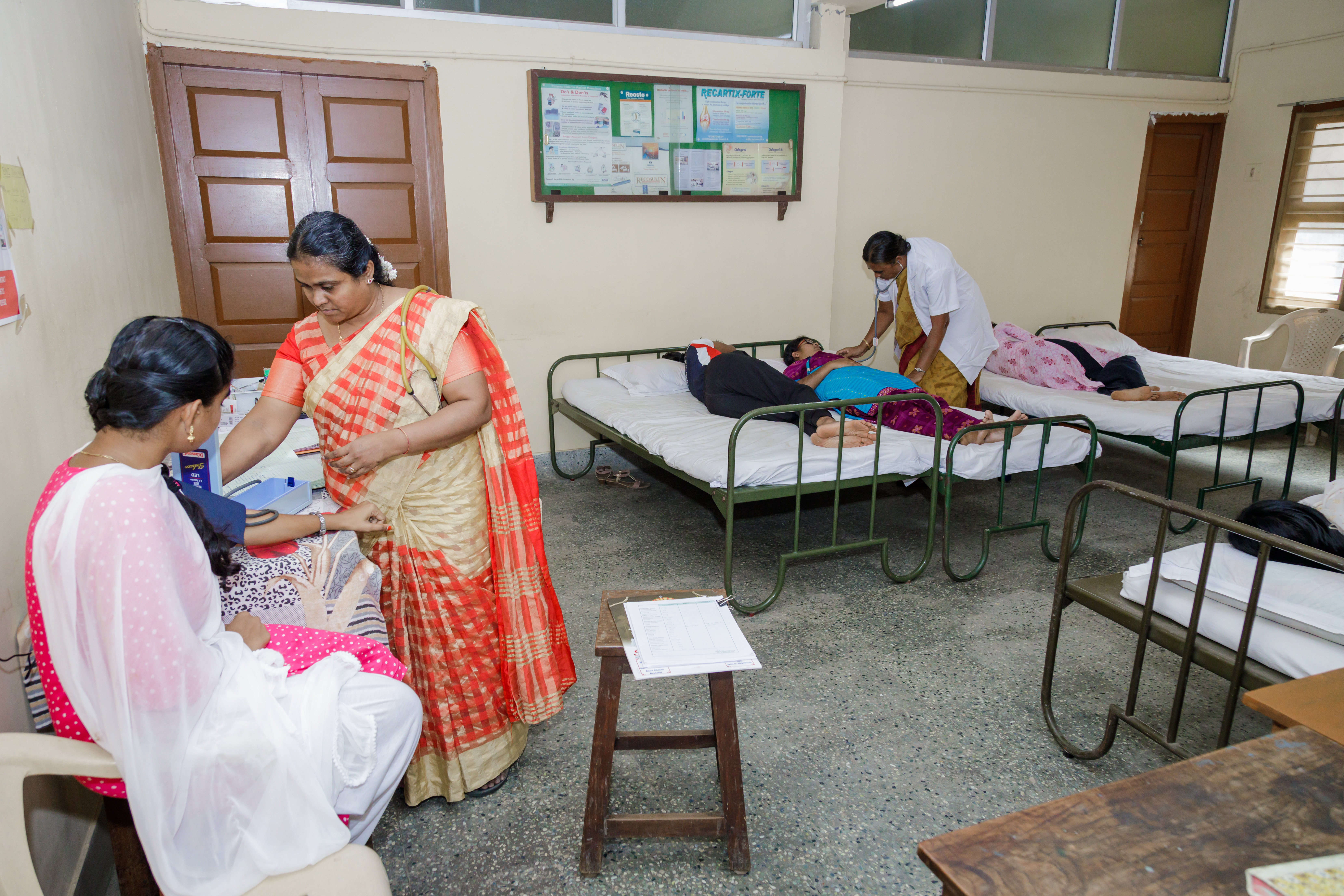 The Health Centre has a qualified Medical Officer who takes care of the students, teaching and non teaching staff and all the other workers in the campus. The centre has a separate consultation room for the Doctor and two other rooms with 10 beds for the students and staff.